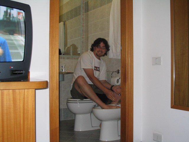 Washing my feet in the bidet. We weren't sure how to use